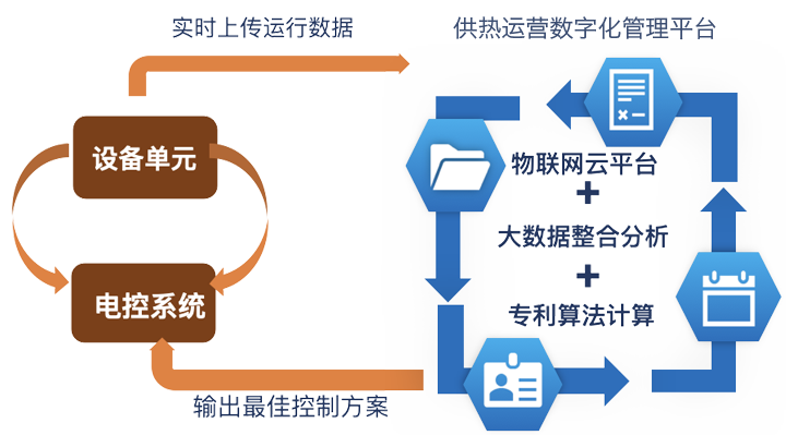 平臺(tái)通過實(shí)時(shí)監(jiān)測(cè)設(shè)備單元的運(yùn)行狀態(tài),形成大數(shù)據(jù)管理,結(jié)合專利算法計(jì)算,輸出最佳控制方案。 通過后臺(tái)“指導(dǎo)”設(shè)備調(diào)節(jié)運(yùn)行參數(shù),有效提高運(yùn)行效率,節(jié)約能源。
